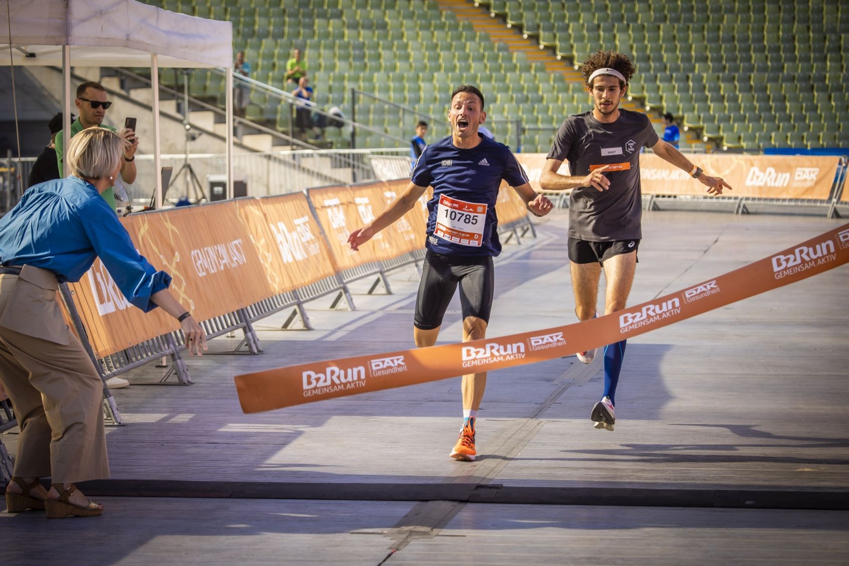 Bilder vom emotionalen Zieleinlauf im Olmypiastadion beim B2Run München 2022 #gemeinsamaktiv
