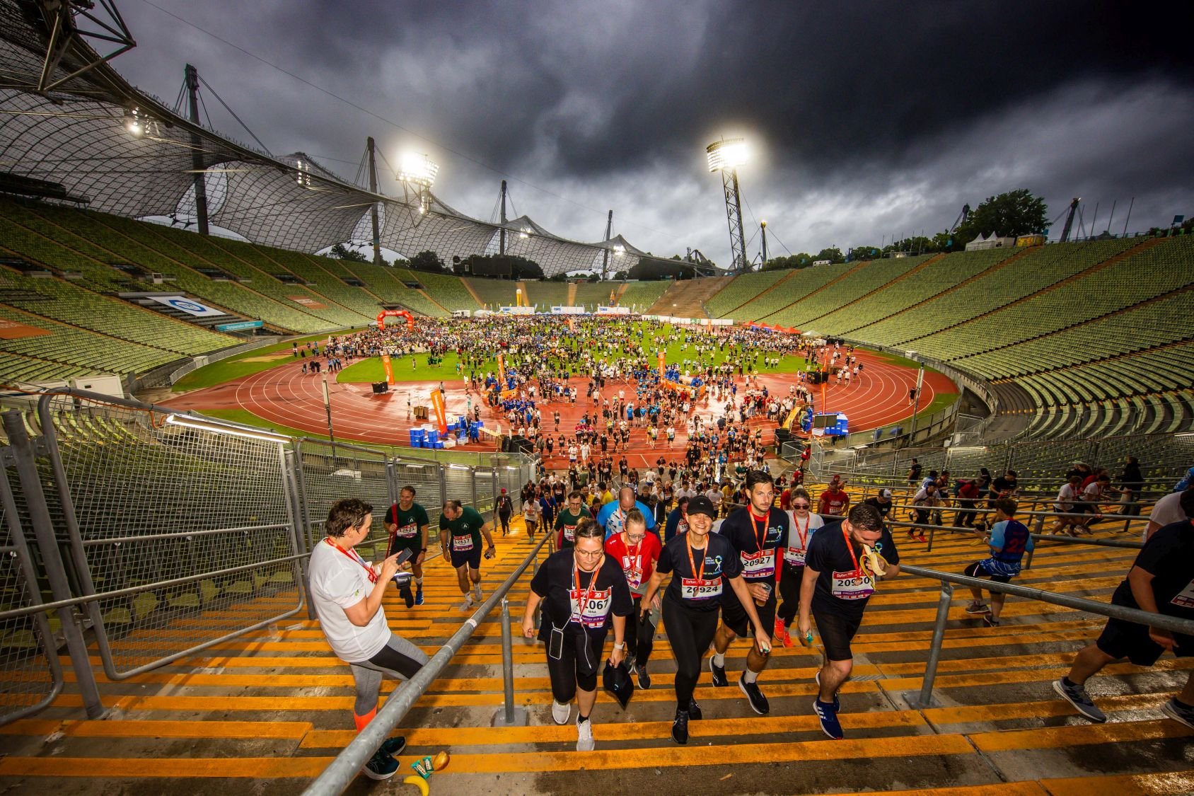 Bilder vom emotionalen Zieleinlauf im Olmypiastadion beim B2Run München 2025 #gemeinsamaktiv