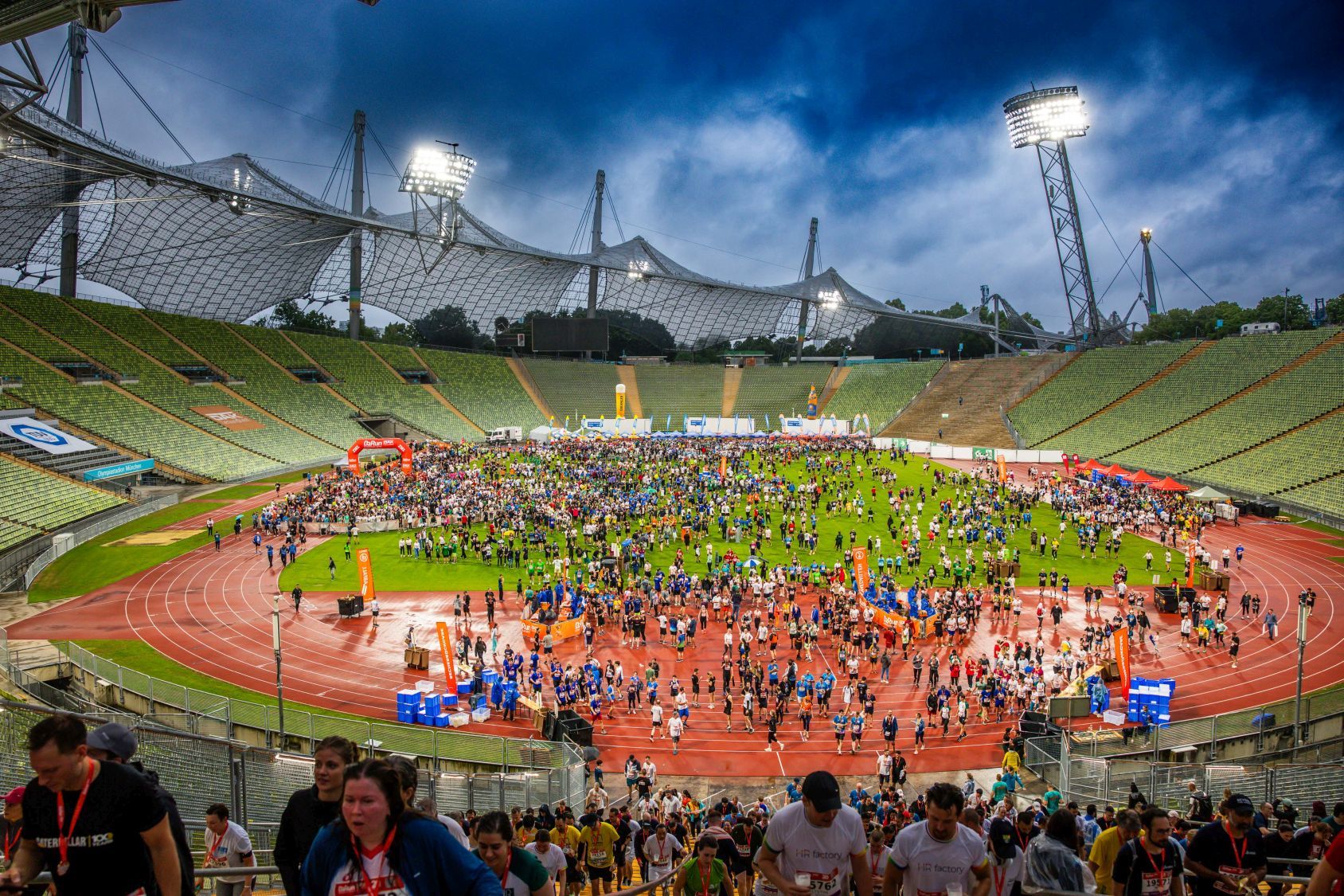 Bilder vom emotionalen Zieleinlauf im Olmypiastadion beim B2Run München 2025 #gemeinsamaktiv